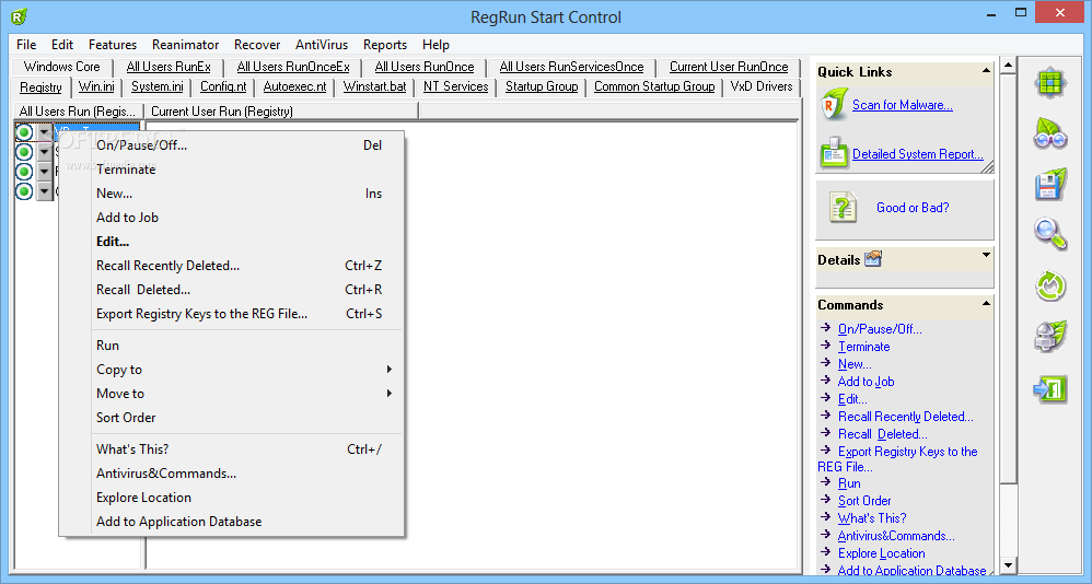 RegRun Security Suite Platinum is a demo software by Greatis Software and works on Windows 10, Windows 8.1, Windows 8, Windows 7, Windows 2012.