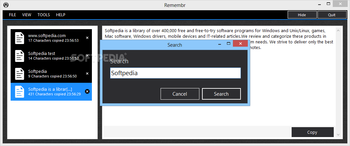 Once you reach a certain number of text instances, it becomes rather difficult to look for certain items whenever you need them. Thus, to help you quickly find the desired text, Remembr enables you to perform search queries on the entire clipboard history, by simply entering the term or phrase to look for.