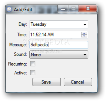 Hitting the “Add†button from the main window gives you access to several time related options. You can select specific days when the alarm to go off or even make it recurrent.