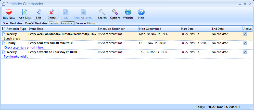 Various reminder types – one-off and periodic
