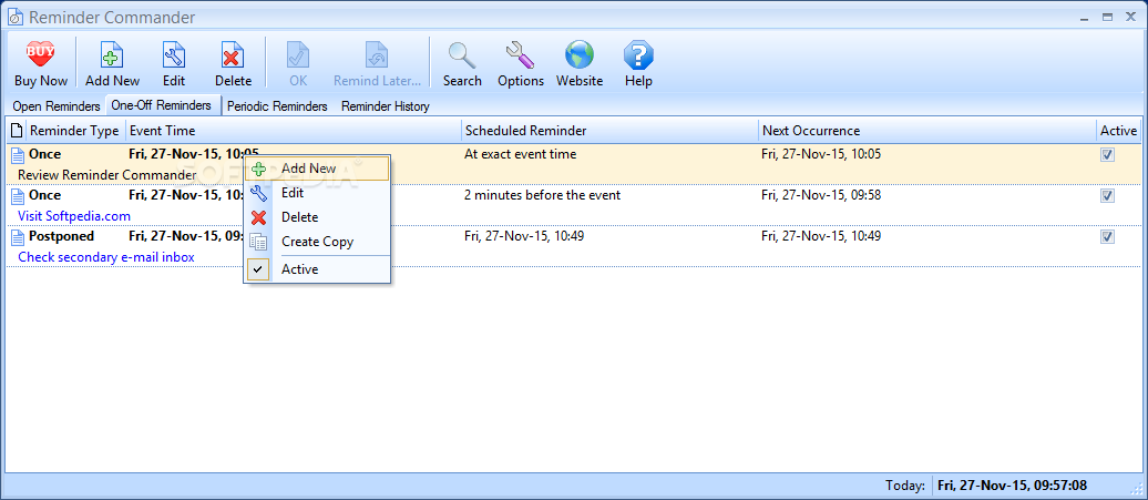 You can download Reminder Commander which is 6.03 MB in size and belongs to the software category Diary Organizers Calendar. Reminder Commander was released on 2014-04-25 and last updated on our database on 2017-03-31 and is currently at version 4.04.