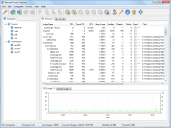 Manage remote processes and control remote computers. Free for personal use, Remote Process Explorer replaces Windows Task Manager with a much more advanced version. Remote Process Explorer allows monitoring all local and remote processes through a single user interface, accessing vital information about processes such as Process ID, Parent PID, Priority, Handles, Threads, and much more, in real-time. The product displays complete information about every local and remote process, including owner information, CPU time and memory consumption, path to executable file, and much more.Not sure if a particular process is malware or not? For a bit of extra security, Remote Process Explorer allows looking up processes over the Internet, retrieving additional information and reporting about known malware.One can launch, terminate or change priority for any process running on either a local or remote PC. Remote Process Explorer shows processes in the form of a process tree, allowing easy navigation among processes and their dependencies. Its easy to terminate all processes with a given name if the need arises. Do everything thats possible with Windows Task Manager on local and remote PCs!Network administrators will appreciate the fact that there is no need to install Remote Process Explorer on every system on the network. Remote Process Explorer runs from a single server, and controls remote PCs securely and reliably. Remote computer management includes remote shutdown and reboot with sufficient privileges.Remote Process Explorer retrieves the list of available network computers and keeps it updated completely automatically. To speed up operation, the product keeps a cached list of remote PCs locally. The combination of cached and actual lists of networked computers allows Remote Process Explorer to display all computers on the network whether they are turned on or off.