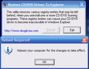 Restore CD / DVD Drives To Explorer is a free software by Doug Knox and works on Windows 10, Windows 8.1, Windows 8, Windows 7, Windows XP, Windows 2000, Windows 2003, Windows 2008, Windows Vista, Windows 2012.