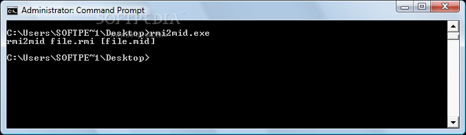 The usage syntax is rmi2mid file.rmi [file.mid]. All you have to do is indicate the source file and format, along with the preferred name of the output file, in addition to its file extension. The encoding procedure is performed immediately.