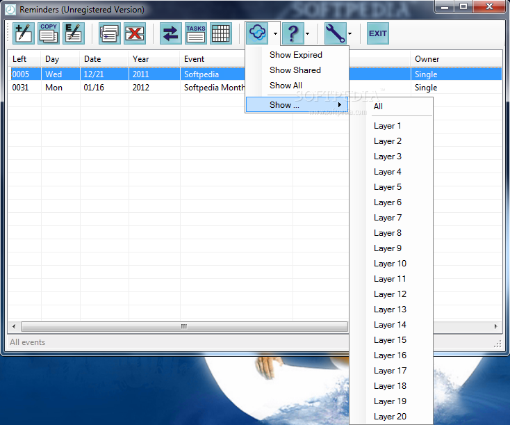 RMP lets you modify the default data path, run silently at startup by showing reminders but not the event list, alter the default WAV file for alarms or disable sounds completely, as well as activate the tool either for a single user or the entire network. The later option basically enables you to share events over the LAN.