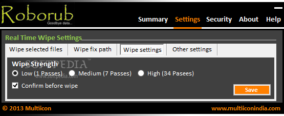Additionally, you can choose the wiping strength that you prefer, depending on how valuable your files are - Roborub can overwrite your erased data once or multiple times, thus helping you make sure it will not be recoverable anymore.