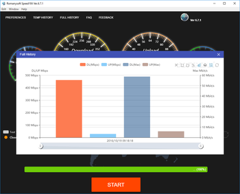 Interestingly, the utility also bundles two other useful tools that can help you determine how and when the Internet speeds fluctuate. From the app's simplistic top toolbar, you can access the self-explanatory Temp History and Full History features.