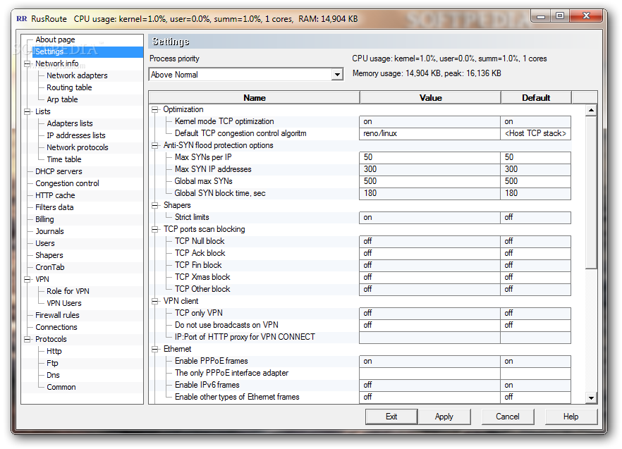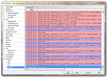 RusRoute offers HTTP and DNS filtering capabilities, TCP congestion control and user management facilities also. The VPN function is well represented and you will be able to add and edit firewall rules from the corresponding area.