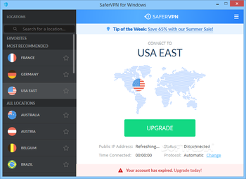 You can download SaferVPN which is 7.95 MB in size and belongs to the software category Virtual Private Internet. SaferVPN was released on 2017-01-26 and last updated on our database on 2017-04-22 and is currently at version 3.8.