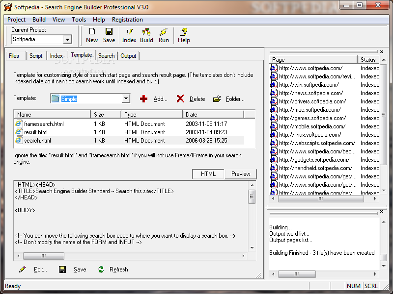 Search Engine Builder Professional is a useful software that builds a search engine for your website to enable your site visitors to search your whole site. The site search script can be ASP, PHP, Java Scrip, etc. The appearance and functional of the search engine are fully configurable.