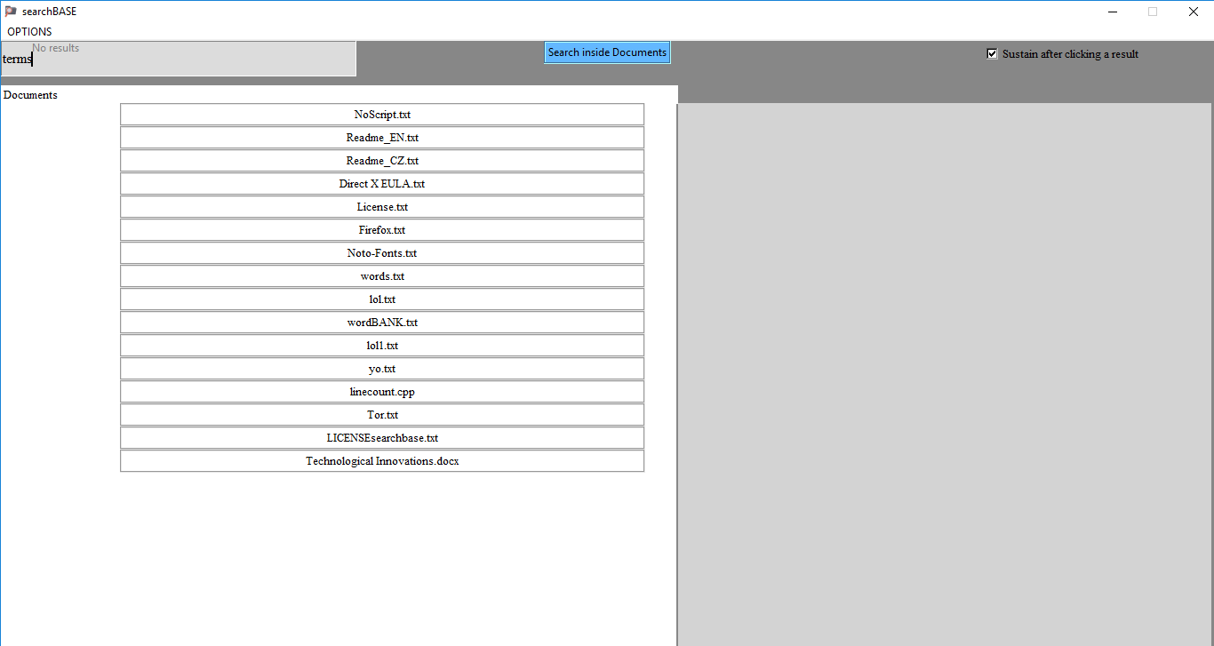 searchBASE , the second iteration, can search smartly inside your hard drive for files and folders based on the keywords you enter.It searches inside Docs as well and this search is fast as hell (pdfs included in this version). Moreover Its easy to use, fast to start, and setup. It can display all the documents that contain that word, within a millisecond. Be it pdf or MS Excel docs , making it a perfect document fetcher.It is a great alternative to windows search utility. It is an improved search app that starts displaying results as soon as you start typing keyword(s) in the search box. No need to even type the keyword fully. The superiority of searchbase to windows search is because of the features like its speed, efficiency, low system resource(ex cpu) usage and stability.It creates a virtual database (index) to improve search speed and results.