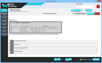 Self Test Training - Cisco 300-101 is suitable for candidates who wish to take the exam and need to establish the ground for the acquired knowledge. The program includes several modules, namely the Learning Mode, Rapid Review and Assessment Test.