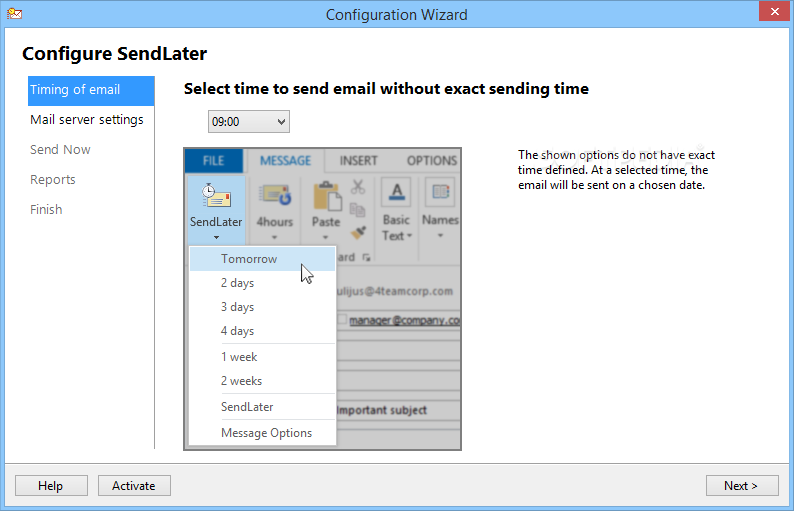 SendLater is a demo software by 4Team Corporation and works on Windows 10, Windows 8.1, Windows 8, Windows 7, Windows XP, Windows 2000, Windows 2003, Windows 2008, Windows Vista, Windows 2012.