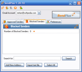 Once installed, SendPlus compares the senders email address (from each incoming email you receive) to your Approved and Blocked email address lists. Email from an address on your Approved list is automatically placed in your Inbox while email from an address on your Blocked list is discarded (placed in the Trash/Deleted Items folder - or wherever you designate).