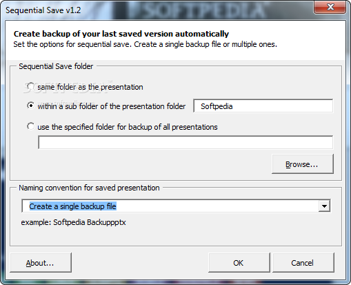 Sequential Save is a PowerPoint add-in designed to help you backup your work by saving different copies of the presentations. Unlike the PowerPoint save function, this add-in creates a new file every time you click the Save button.