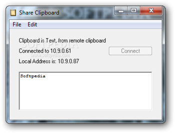 When it comes to connection parameters, the tool gives you the possibility to enter the IP address of the target computer. In addition, Share Clip keeps a list with recently used connections so you can easily enable the preferred one.