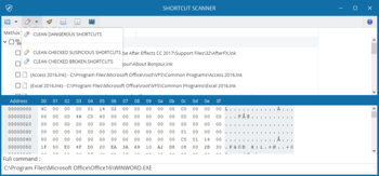 Once the scan is complete, we shift focus to the main window, which reveals a list of all the LNK files in the target location. Shortcut Scanner enables you to see the hex mode of a file, its addresses, and more. There is a checkbox in front of each link, so selecting one or multiple items is conveniently simple.