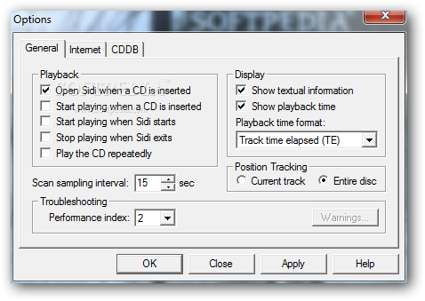 Its simple interface hides a rich set of features including the ability to download information about the CD you are playing from the Internet (CDDB). This way, you dont need to grab the CD box each time to figure out what you are playing or want to