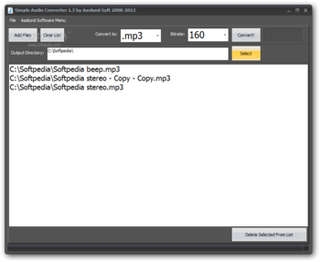 In the file list you can read the location of each item. Once the output directory and file type have been established, you can proceed with the conversion procedure with the default settings. Otherwise, you can select the audio bit rate. Plus, you can clear the queue.