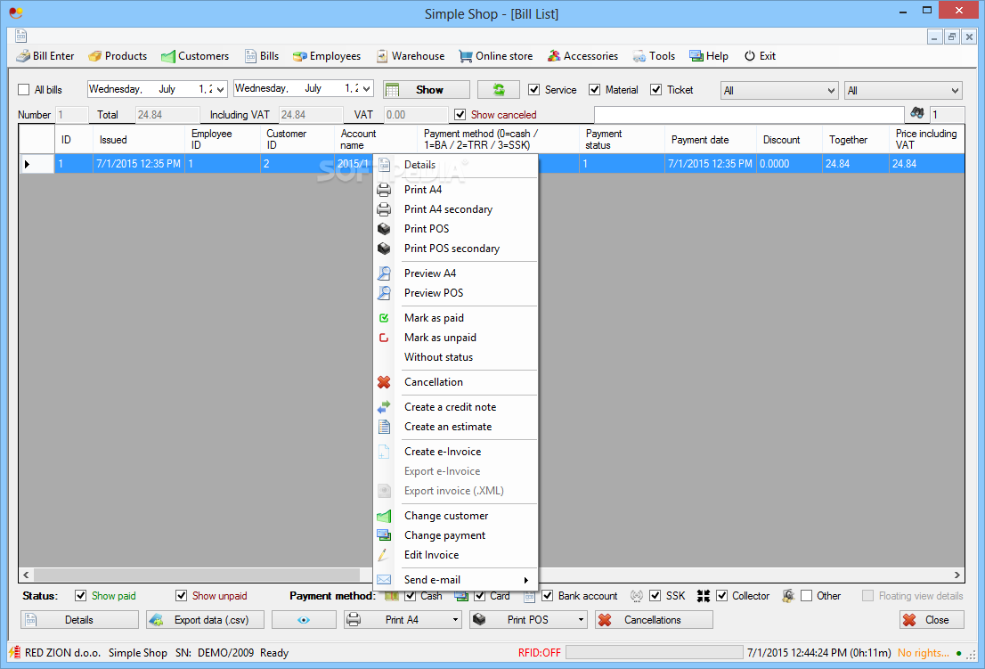 Overall, Simple Shop is a comprehensive tool, designed to help business owners keep track of their finances, manage stocks, employees and customers, as well as generate invoices and export data to various formats.