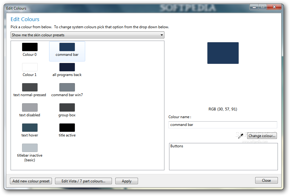 Improved support for title bar buttons. Easily change the per-pixel settings