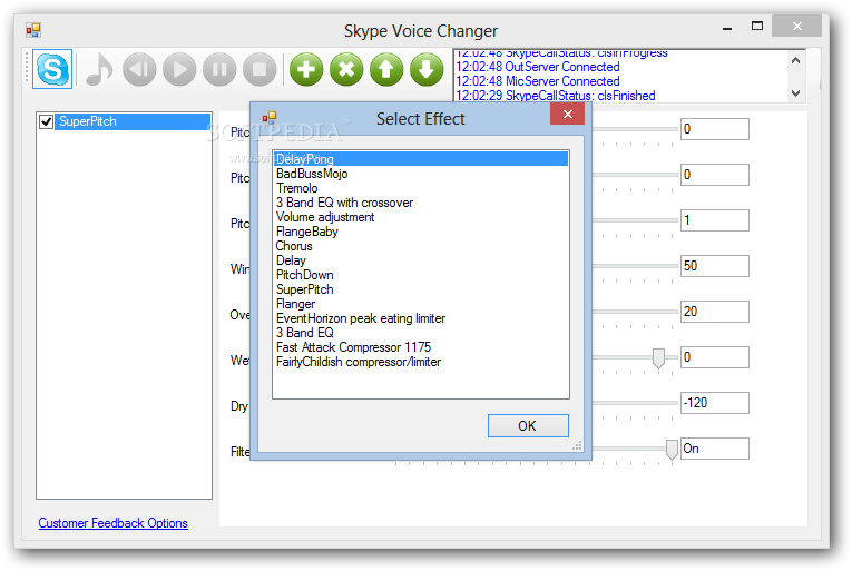 In order to enjoy the features of Skype Voice Changer, it first needs to be authorized within Skype, and then users simply need to start a call and choose one or several effects to customize their voice. One can further adjust pitch, delay or speed, depending on the type of effect they settled for.