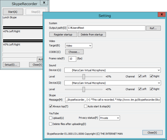 SkypeRecorder is a free software by The Internet Man and works on Windows 10, Windows 8.1, Windows 8, Windows 7, Windows 2008, Windows Vista, Windows 2012.