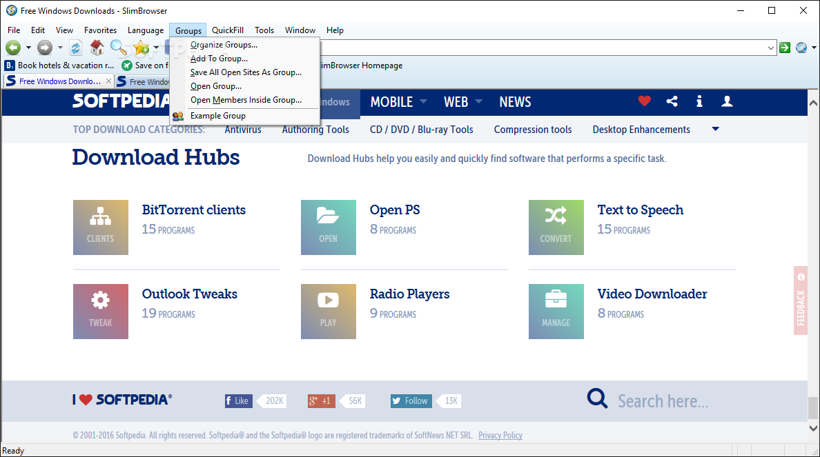 You can download SlimBrowser [Softpedia Edition] which is 3.94 MB in size and belongs to the software category Browsers. SlimBrowser [Softpedia Edition] was released on 2016-06-06 and last updated on our database on 2017-04-13 and is currently at version 8.