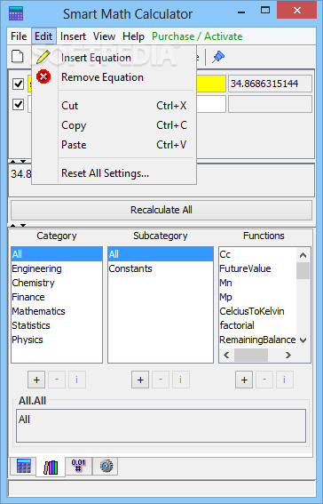 Advanced yet easy-to-use math calculator that immediately and precisely computes the result as you type a math expression. It allows multiples math expressions simultaneously. Solve equations, do fractions, define your own variables and functions. It has a beautiful user-interface that conveniently allows you to directly edit the expressions or if you prefer use a visual keypad to enter new expressions. There is support for over 20 math functions. Smart Math Calculator is the easiest and most convenient calculator in the world with amazing features: Type down any math expression and immediately observe the result; Use over 20 math functions and over 30 scientific constants in your expression; Define variables and assign values or math expressions to them; Enjoy the most advanced yet easy-to-use user interface; Compute results as precise as up to 1000 digits; Compute results as fractions. Easy To Use: When you are calculating a mathematical expression, every second counts. Dont waste your time clicking on numbers and functions. Simply type it down and observe how the expression is recalculated immediately after each stroke. Define Your Own Variables: Isnt it frustrating to keep track of previously calculated expression? In our Smart Math Calculator not only you can have multiple expressions at same time, but you can also assign the result of these expressions to variables and then use the variables in other expressions. Most Convenient User Interface: The beautiful user-interface of our Smart Math Calculator is designed carefully to make life easy for you. If there is a problem in your expression it is highlighted in red as you type it. If your expression contains new variables, new text boxes will be added automatically as soon as you press the Enter key. The advanced keyboard panel contains not only the built-in functions and constants but also your defined variables.