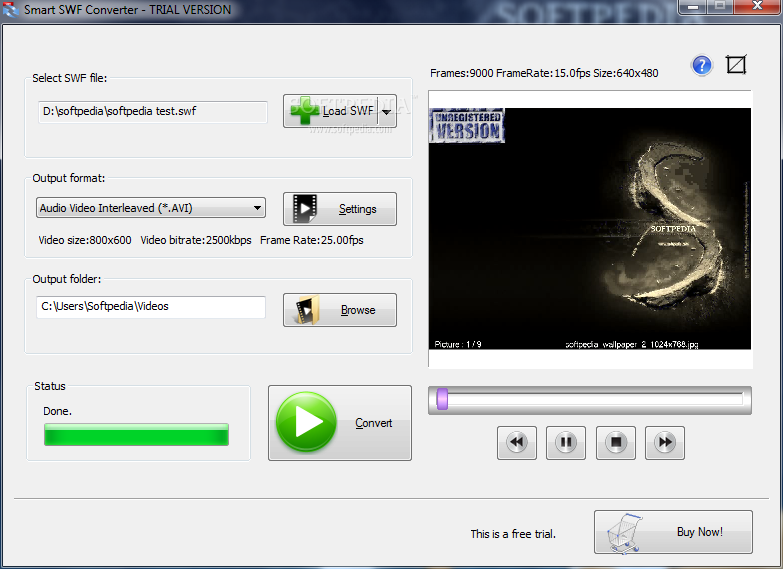 We have not come across any issues during our tests, as Smart SWF Converter did not hang, crash or pop up error dialogs. However, the time it takes to finish a conversion task equals the SWF duration. On top of that, it plays the clip during conversion, so users cannot carry on with normal activity on the PC during this time. It is possible to stop conversion and finish the project as it is, though (i.e. video trimming). The quality of the output clips is quite good. All in all, Smart SWF Converter serves its purpose and comprises a set of handy features.