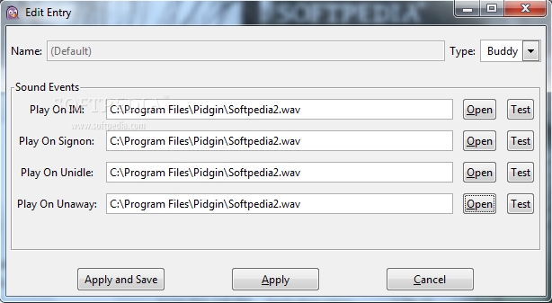 SmartEar allows you to opt to play sounds when a buddy sends you an IM, signs on, returns from away or idle, or any combination of these, so youll know by the sound what the important people are doing. Youll never have to talk to people you dont like again.System requirementsPidgin