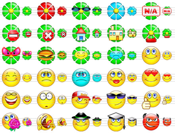 Smile Icon Set is a collection of bright chat-style icons depicting various emotions shown by facial expressions.