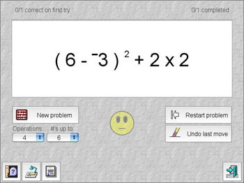 Smooth Operators is a complete solution for learning, practicing, and testing the order of operations. An interactive lesson teaches the math concepts thoroughly with explanations and example problems. In practice mode, students click on operators in the correct order. In test mode, the user types in the answers. Smooth Operators helps students master crucial skills and prepare for algebra and higher math. Ideal for school or home.