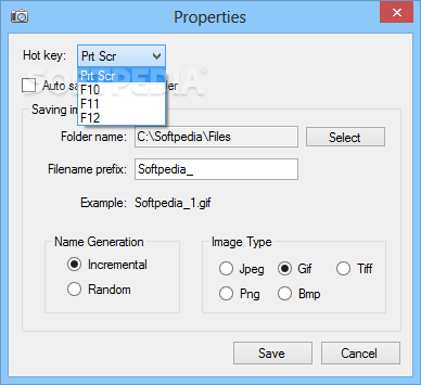 Saves files in BMP, GIF, JPEG, PNG and TIFF formats