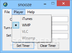 After you have set up a timer, you can select which application should be affected by it. The program supports iTunes, Windows Media Player, VLC and Winamp.
