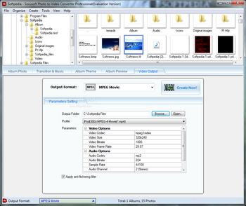 Convert photo to video in MOV, MP4, 3GP, WMV, AVI, FLV, MPEG, MKV, h.264, HD video formats