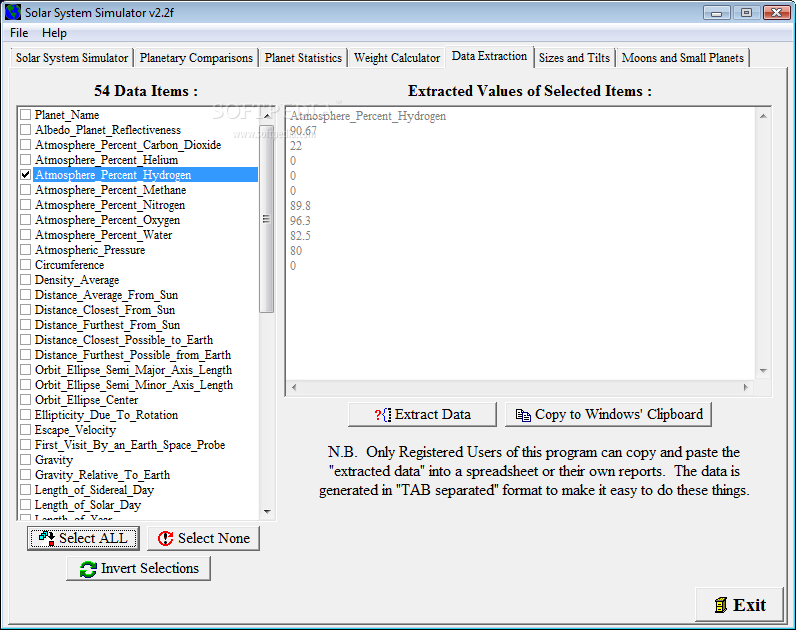 It lets you include or exclude the Jovian Planets (Jupiter, Saturn, Uranus, and Neptune), or change various other options inside graphs. It allows you to extract data into other applications.