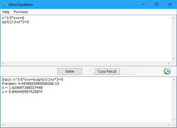 You can download Solve Equations which is 3.32 MB in size and belongs to the software category Home and Education. Solve Equations was released on 2017-07-30 and last updated on our database on 2017-07-30 and is currently at version 1.01.