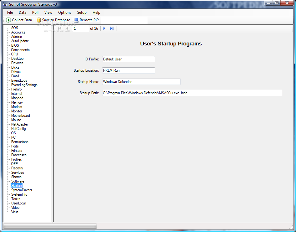You can download Son of Snoop on Steroids which is 1.36 MB in size and belongs to the software category System Info. Son of Snoop on Steroids was released on 2014-11-14 and last updated on our database on 2017-04-04 and is currently at version 3.2.