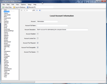 In a corporate environment, SOSOS is typically configured to run in the background during login and therefore most users are never even aware of SOSOS, much less the role that it plays in maintaining the security of the network. The program can also be used by a system administrator at any time to poll remote PCs for their data.
