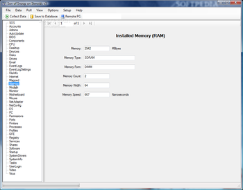 Son of Snoop on Steroids (SOSOS) was designed to be a computer hardware and software inventory program. It gathers over 220 pieces of information about computers and optionally stores this information in a database. It can be run locally or can be used by an administrator to scan a network.