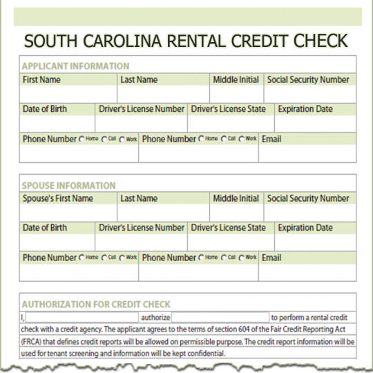 South Carolina Rental Credit Check Description