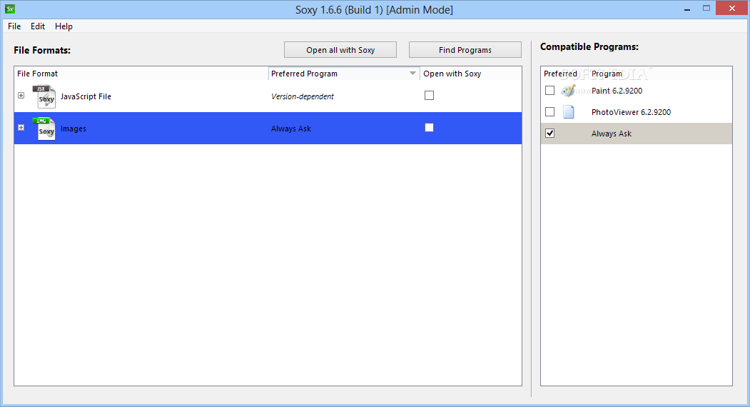Soxy is an intuitive software program that you can use to easily make associations between files and other installed applications. It contains just a few options that can be figured out even by rookies.