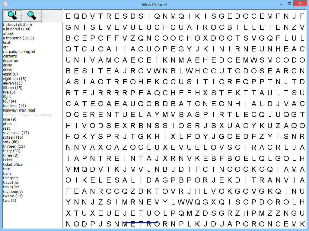Spanish Word Searches aims to assist users in learning or enriching the Spanish vocabulary and improve their language skills.