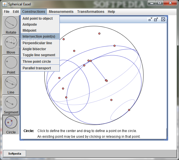 It may be viewed as a companion to The Geometers Sketchpad and Non-Euclid, programs for studying Euclidean and hyperbolic geometry, respectively.System requirementsJava
