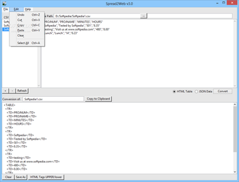 Spread2Web is a utility for converting comma separated (CSV) or tab delimited (TAB) files to nice clean HTML tables or JSON data.