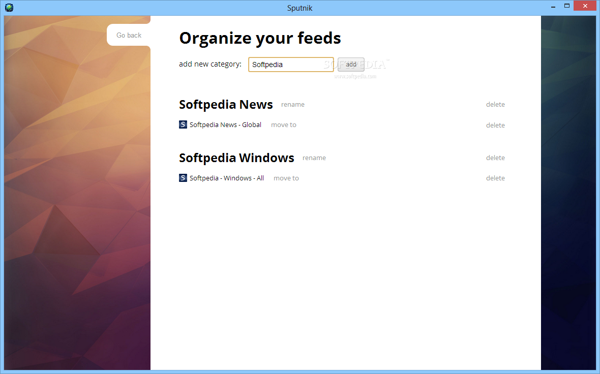 Secondly, Sputnik sports a daring and appealing design that attracts the eye, but this is one of its many strengths. The main window is organized in such a way, that most of the space is allocated to the contents of the feed, while the list of URLs is stored on its left side.