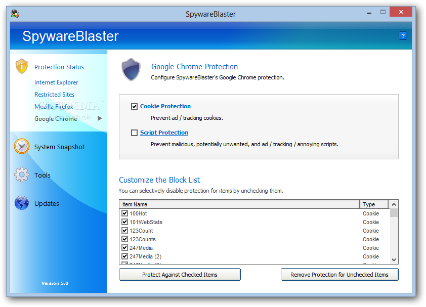 You can download SpywareBlaster which is 4.29 MB in size and belongs to the software category Popup Ad Spyware Blockers. SpywareBlaster was released on 2016-05-19 and last updated on our database on 2017-04-13 and is currently at version 5.5.