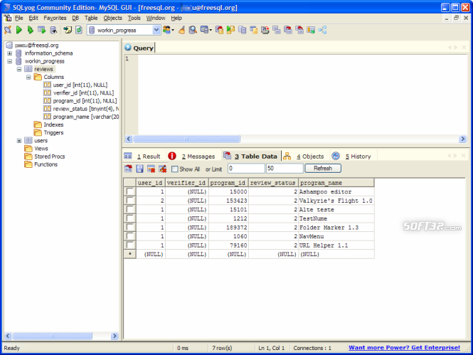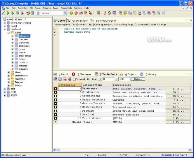 SQLyog MySQL GUI is a demo software by Webyog Softworks Pvt. Ltd and works on Windows 10, Windows 8.1, Windows 8, Windows 7, Windows XP, Windows 2000, Windows 2003, Windows 2008, Windows Vista, Windows 2012.