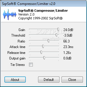 You can download SqrSoft Compressor/Limiter which is 46.36 KB in size and belongs to the software category Audio. SqrSoft Compressor/Limiter was released on 2008-01-23 and last updated on our database on 2017-02-20 and is currently at version 2.